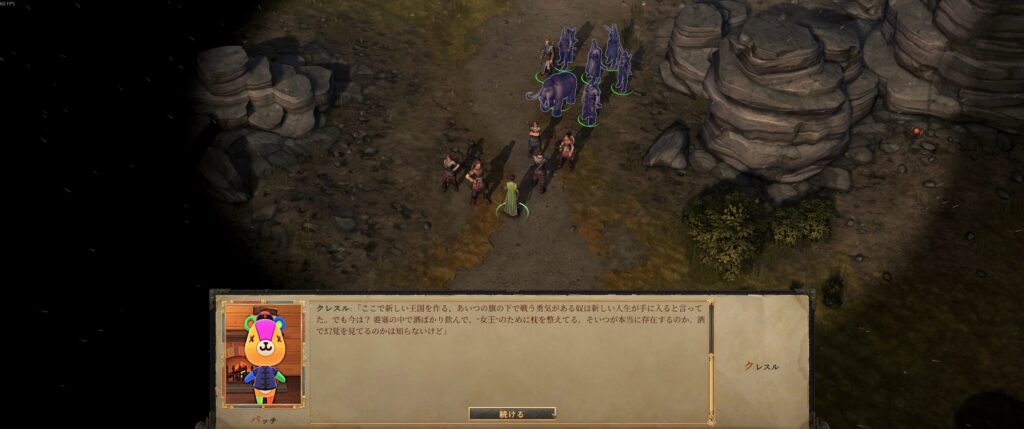 このあと捕まっていたハリムを仲間にして、マイト族長に報告して一旦、野営に。