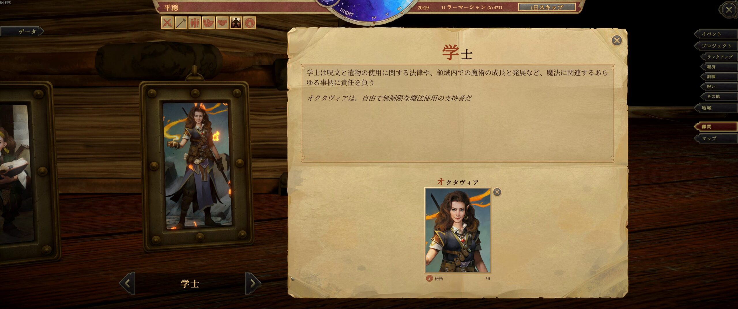 呪いの解析ぶん回しのせいで、どうしても遅れがちですが。なんとか4章前に学士の顧問を付ける事が出来ました。