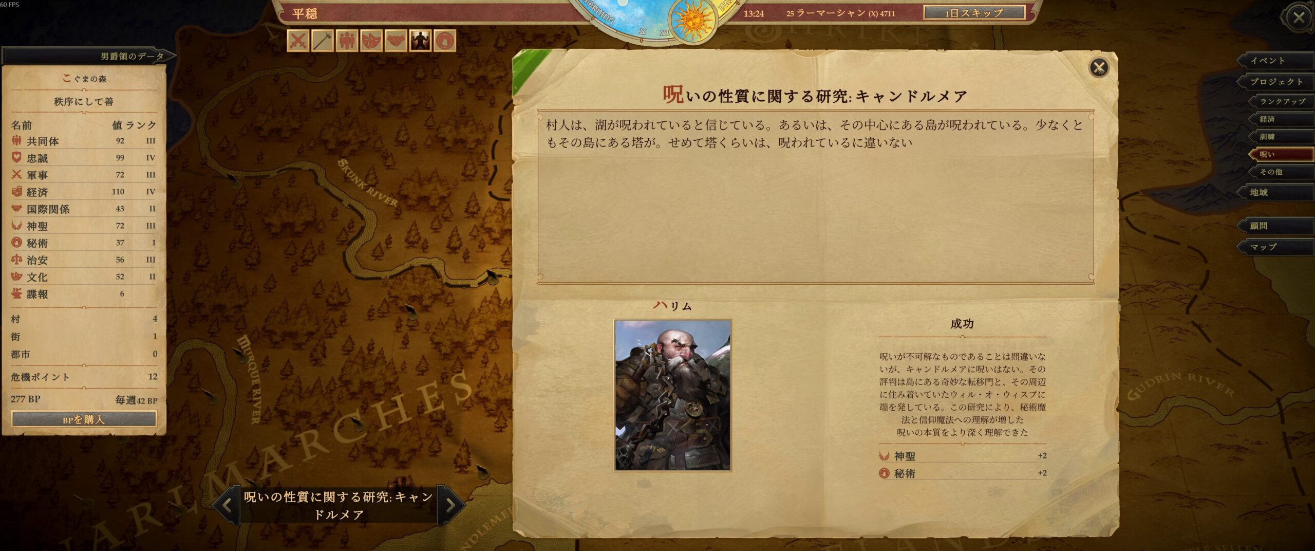 王国運営ですが、呪い解析と、今はとにかく秘術2を目指して回しています。