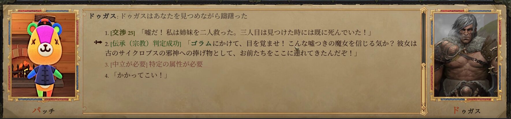 ドゥガスの説得に成功すると、ドゥガス達は敵対しません。