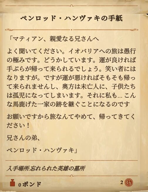 ここではサブクエストに必要な手紙も見つかります。
