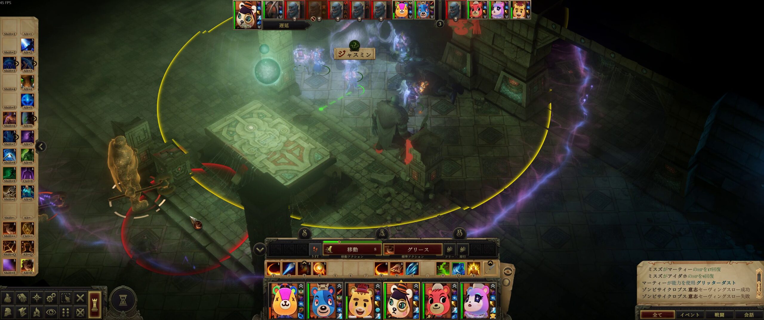数は多いですが、レベルを上げたジャスミンのグリースと、グリッターダスト、スティンキングクラウドも効果ありなので、無力化は簡単です。
