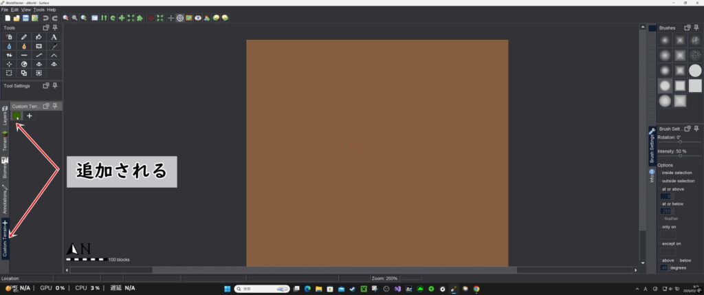 終わったらOKをクリックすると、Custom Terrainに追加されている。