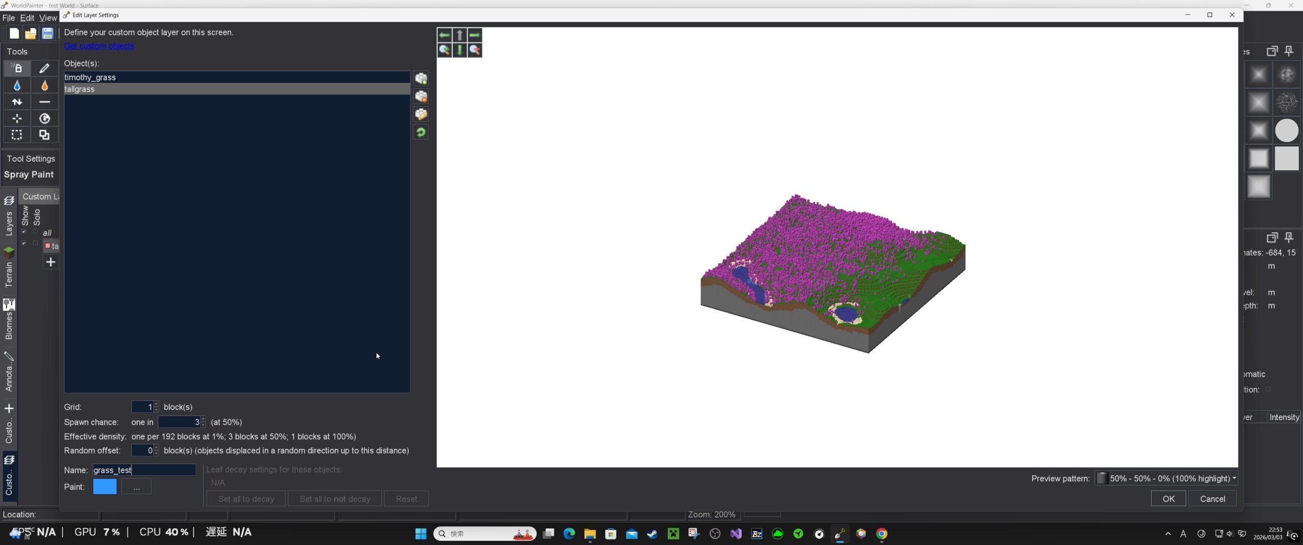 草も同じようにカスタムレイヤーで生成してみる。